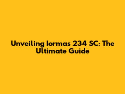 Unveiling Iormas 234 SC: The Ultimate Guide