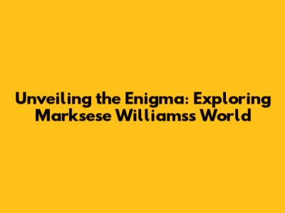 Unveiling The Enigma: Exploring Marksese Williams's World