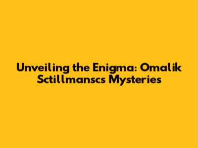 Unveiling The Enigma: Omalik Sctillmansc's Mysteries