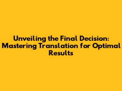 Unveiling The Final Decision: Mastering Translation For Optimal Results