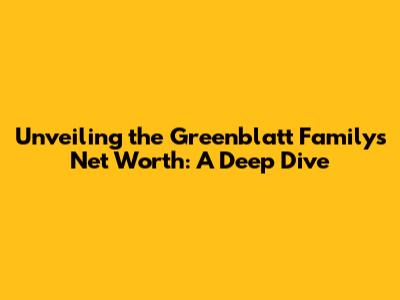 Unveiling The Greenblatt Family's Net Worth: A Deep Dive