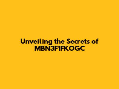Unveiling The Secrets Of MBN3F1FKOGC