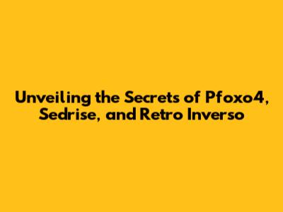 Unveiling The Secrets Of Pfoxo4, Sedrise, And Retro Inverso