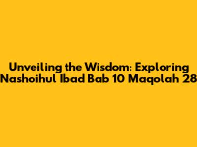 Hey guys! Let's dive deep into something super interesting – Nashoihul Ibad, specifically Bab 10 Maqolah 28. This isn't just some random text; it's packed with wisdom and guidance. Think of it as a treasure chest filled with insights on how to live a better, more meaningful life. We're going to break down this particular section, explore its core messages, and see how we can actually apply these ancient teachings to our modern lives. Ready to embark on this journey? Let's go!