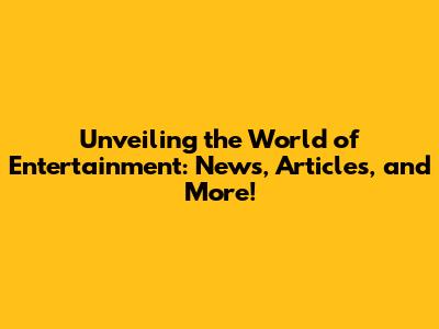 Unveiling The World Of Entertainment: News, Articles, And More!