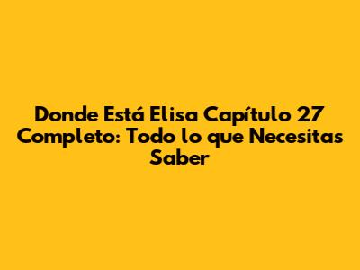 ¡Así que ya saben, amigos! Busquen Dónde Está Elisa Capítulo 27 completo y prepárense para vivir una experiencia inolvidable. ¡No se arrepentirán!