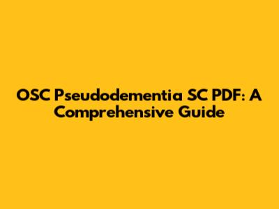 What Is OSC Pseudodementia SC PDF: A Comprehensive Guide