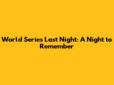 World Series Last Night: A Night To Remember