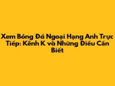 Xem Bóng Đá Ngoại Hạng Anh Trực Tiếp: Kênh K Và Những Điều Cần Biết