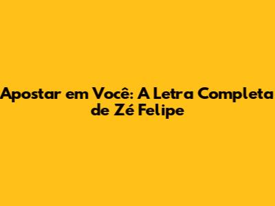 Zé Felipe - Apostar Em Você: A Letra Completa