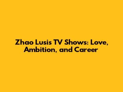 Zhao Lusi's TV Shows: Love, Ambition, And Career